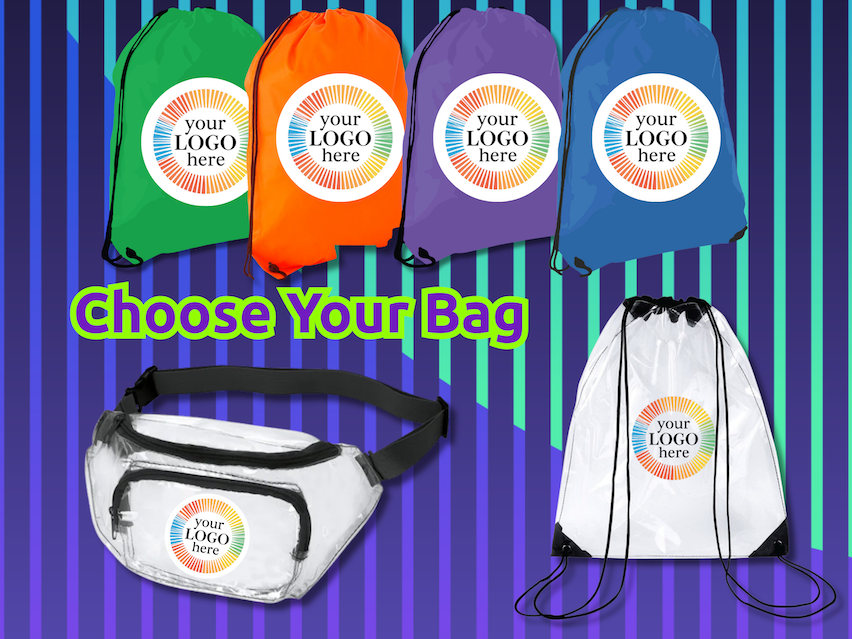 - Your choice of bag (Fanny Pack, Drawstring, clear bag, tote, etc) with your desired logo.